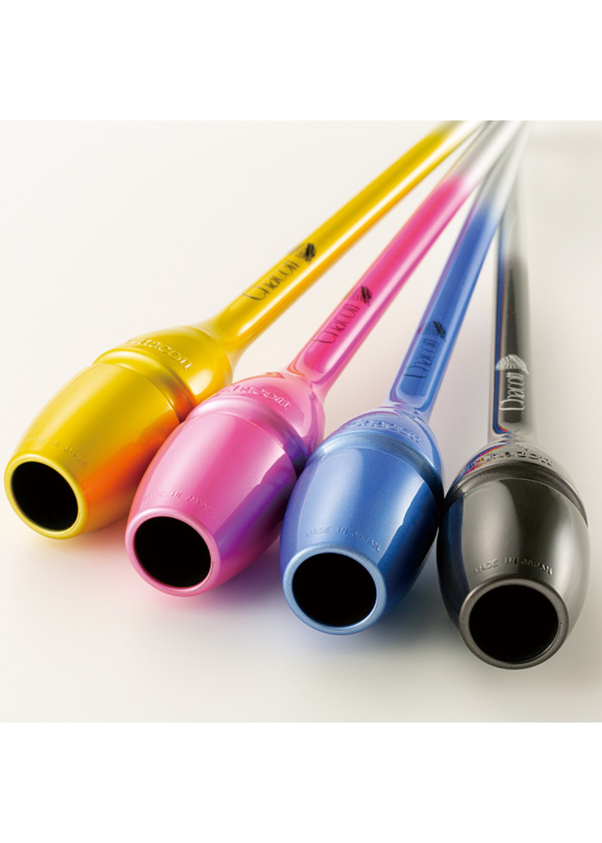 Булави CHACOTT Hi-Grip II — професійна модель для художньої гімнастики, тренувань і змагальних виступів. Повністю гумова конструкція має спеціальне покриття з прозорим градієнтним ефектом, нанесеним поверх металізованої основи, що створює виразний сценічний вигляд. Покриття робить поверхню гладкою та приємною на дотик, покращує контроль у руці й знижує ризик невдалих ловель. Ударопоглинальний еластомер зменшує відскок при падінні, що допомагає зберігати стабільність виконання. Булави безпечні для тіла та підлоги, підходять для регулярного інтенсивного використання.