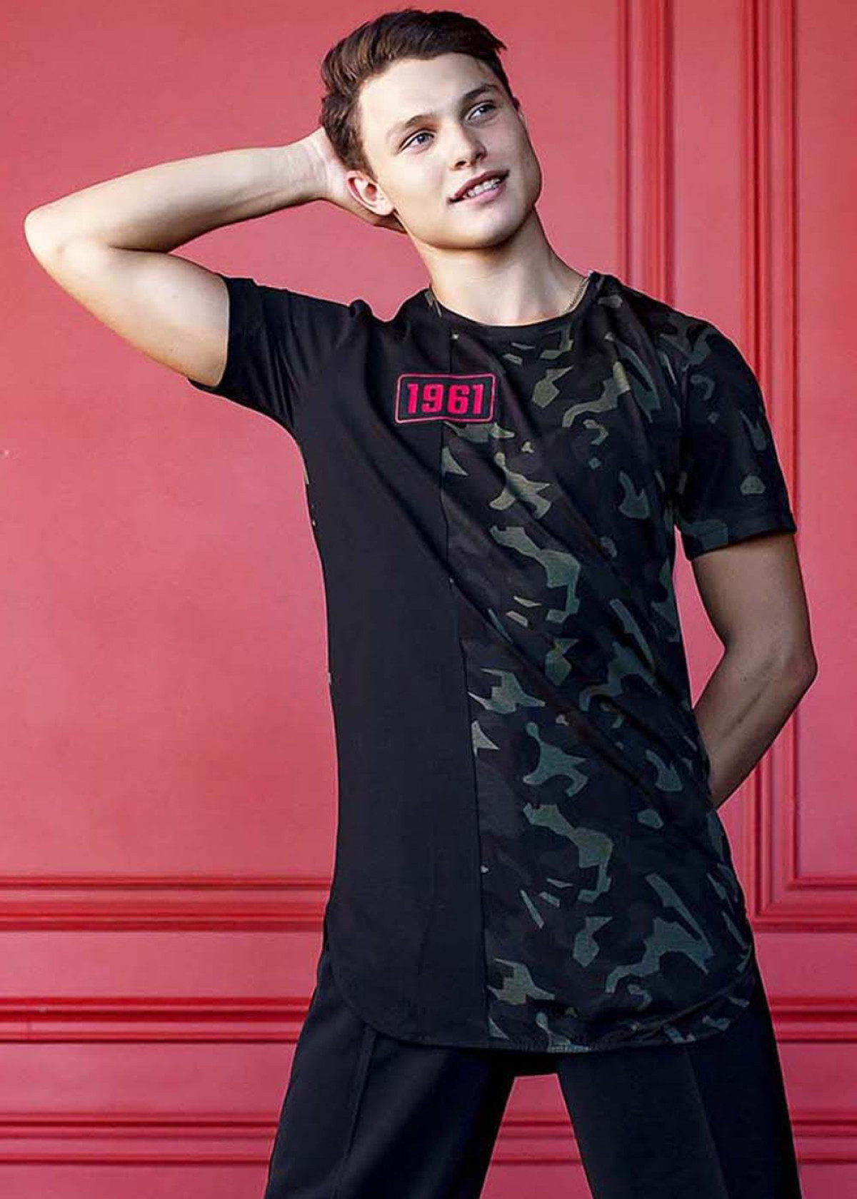 Чоловіча футболка з асиметричним дизайном і камуфляжною вставкою. Модель виконана з м’якого трикотажу на основі бавовни з додаванням еластану — забезпечує комфорт, свободу рухів і зберігає форму після прання. Ідеально підходить для занять спортом, танцями або повсякденного стилю.