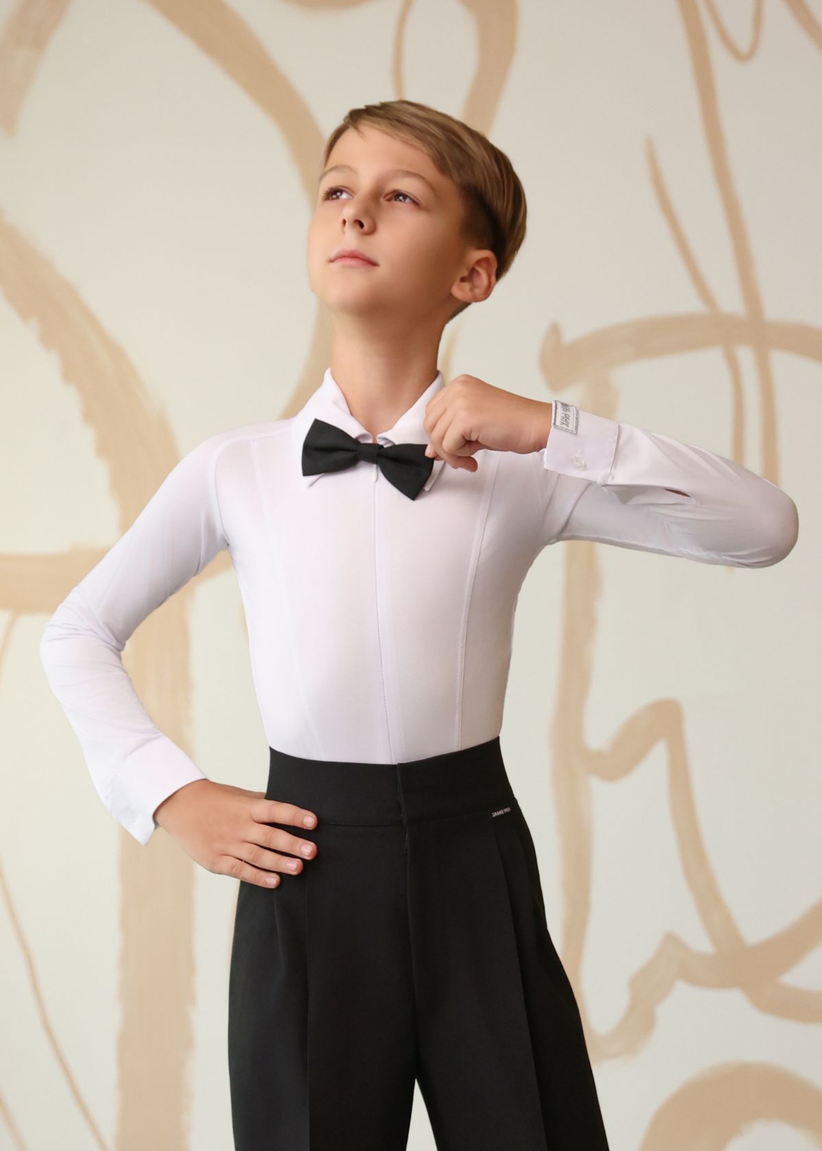 Класична чоловіча сорочка-боді для виступів у стандартній програмі. Виготовлена з еластичного матеріалу, що щільно прилягає до тіла, підкреслюючи фігуру і забезпечуючи свободу рухів. Ідеальна посадка завдяки цільнокроєному формату і практична застібка-блискавка спереду по центру додає зручності під час одягання.