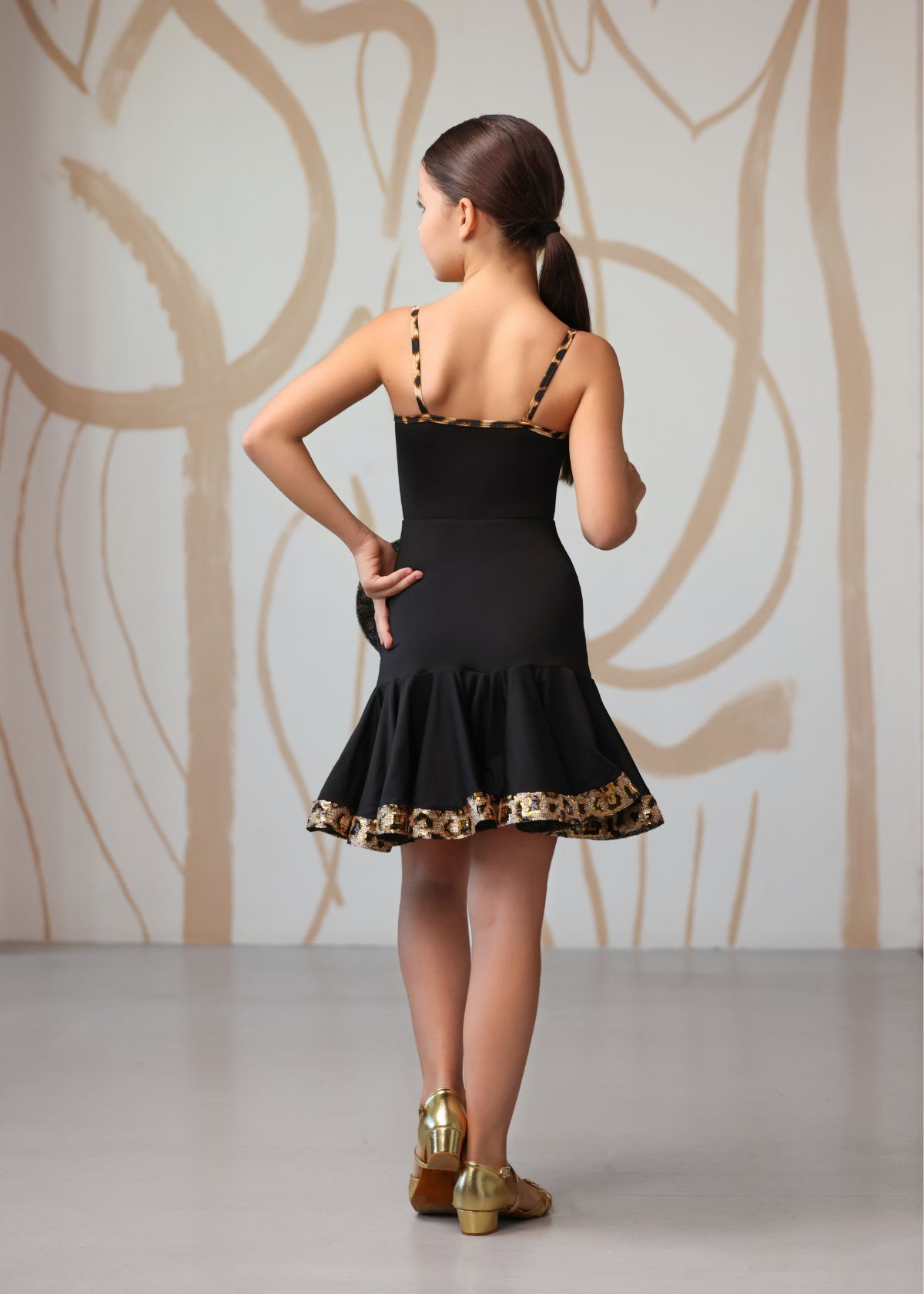 Контрастна окантовка з паєтками леопардового принту створює ефект мерехтіння на світлі, додає рухам блиску та підкреслює ритм танцю.