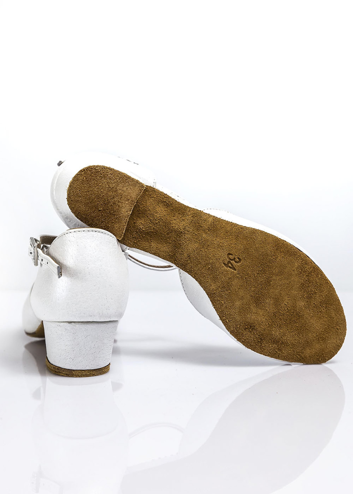 Конструкція цієї моделі спеціально адаптована для юних танцівниць. Оптимальна висота каблука відповідає змагальним стандартам, а глибока п’ятка забезпечує надійну фіксацію стопи. Широка союзка надійно фіксує пальці стопи, а декоративний бантик додає витонченості.