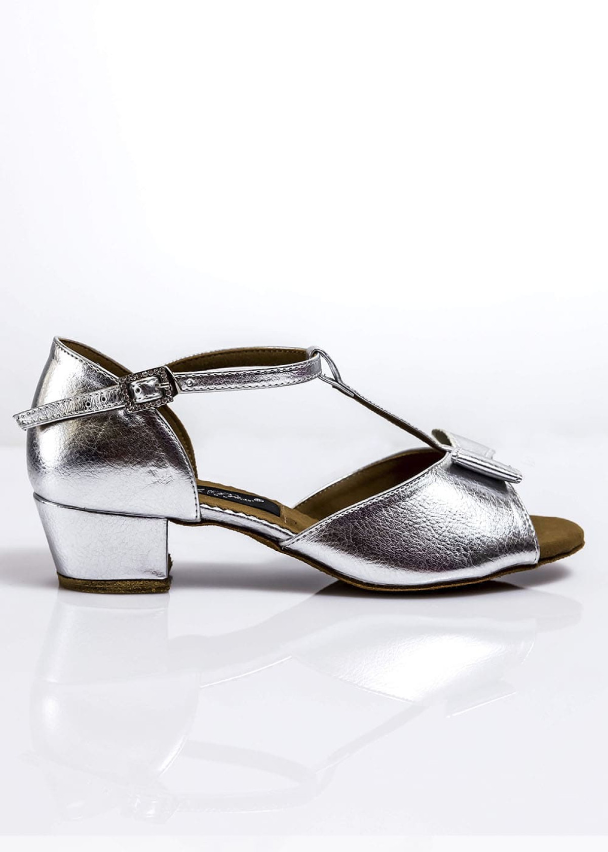 Конструкція цієї моделі спеціально адаптована для юних танцівниць. Оптимальна висота каблука відповідає змагальним стандартам, а глибока п’ятка забезпечує надійну фіксацію стопи. Широка союзка надійно фіксує пальці стопи, а декоративний бантик додає витонченості.