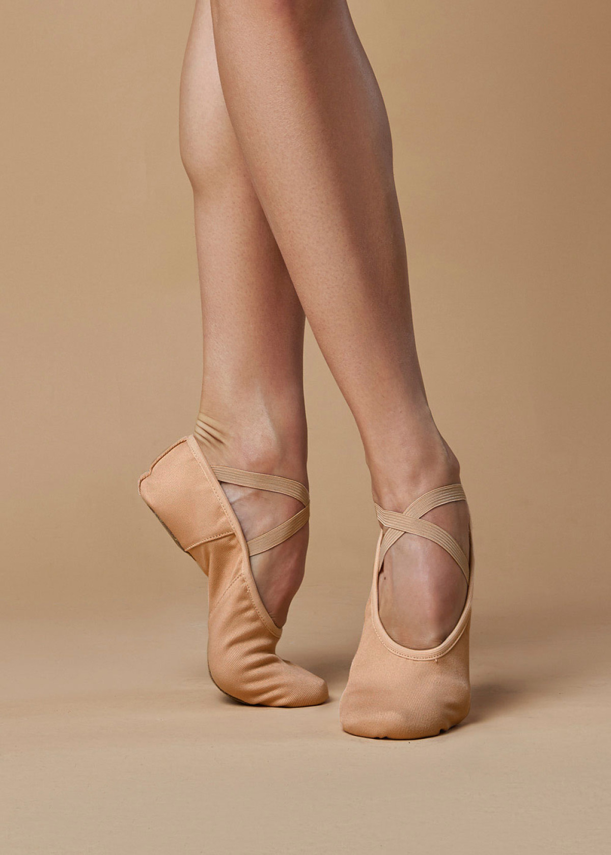 Раздельная подошва из натуральной кожи обеспечивает отличное сцепление с паркетом и защищает стопу от износа.