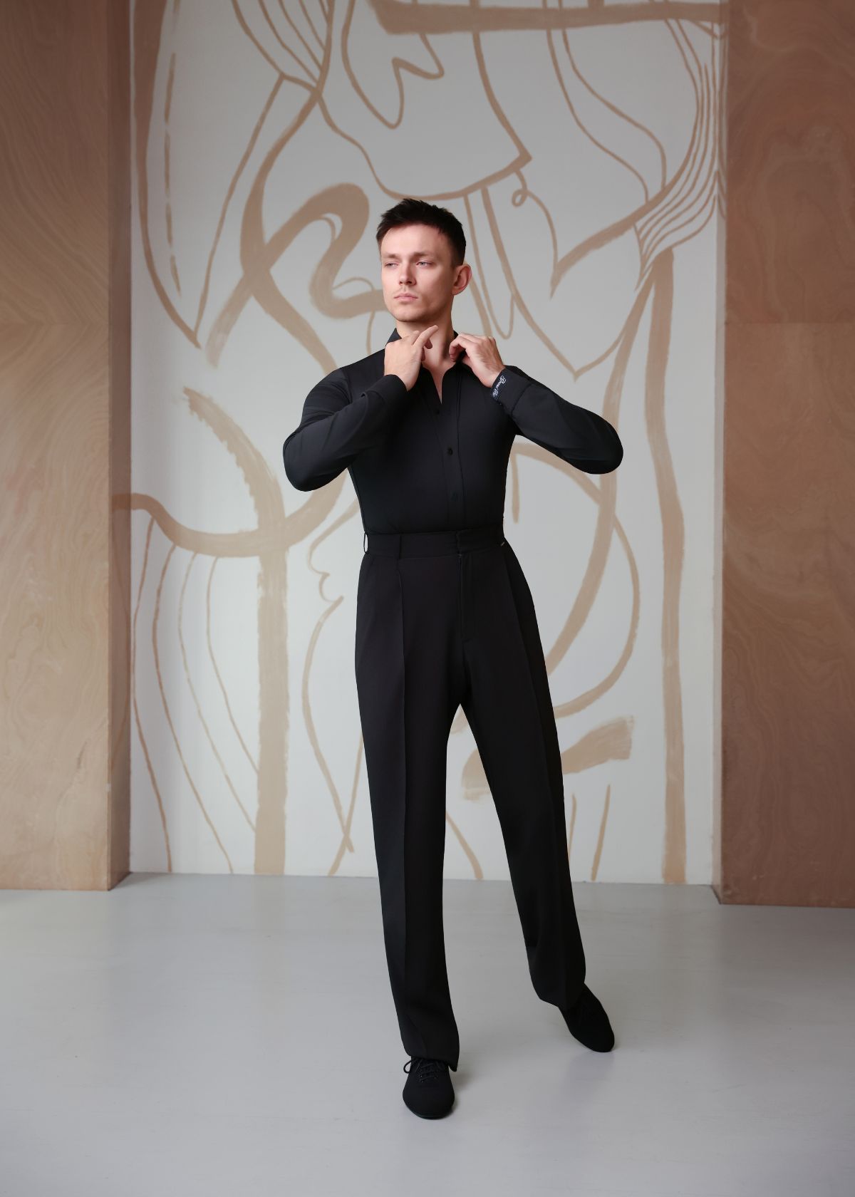 Классическая мужская рубашка для тренировок и выступлений в латинской программе. Мягкий и эластичный материал обеспечивает идеальную посадку и свободу движений. Застёжка на пуговицы по центру, аккуратный воротник и длинный рукав — всё, что нужно для сценического образа.