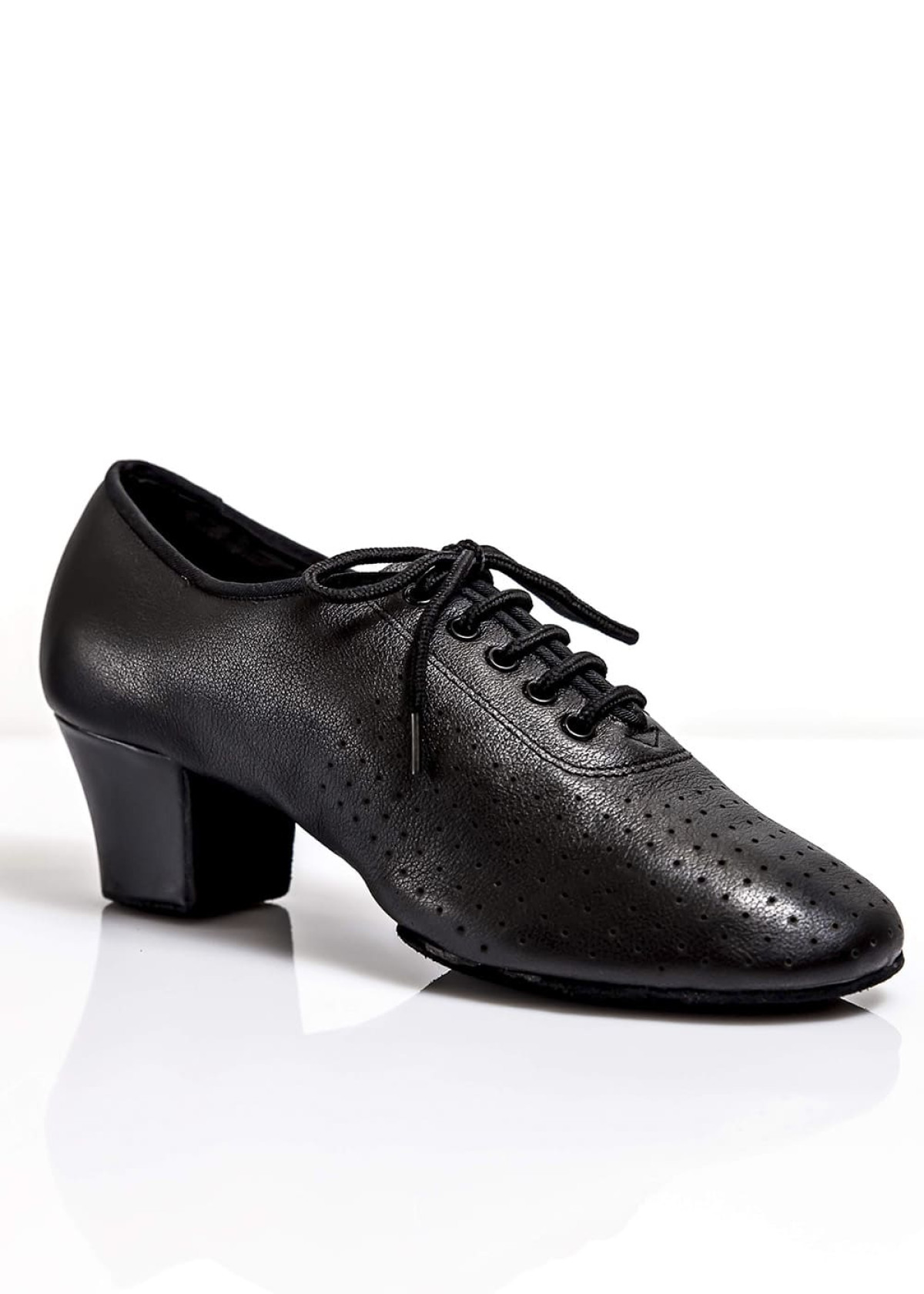Каблук 5 см, устойчивый, с набойкой из спилка для надежного сцепления с паркетом. Благодаря короткому супинатору обувь очень гибкая и повторяет все движения стопы во время танца. Шнуровка позволяет регулировать плотность посадки. В пяточной части предусмотрен мягкий подпяточник для лучшей амортизации.