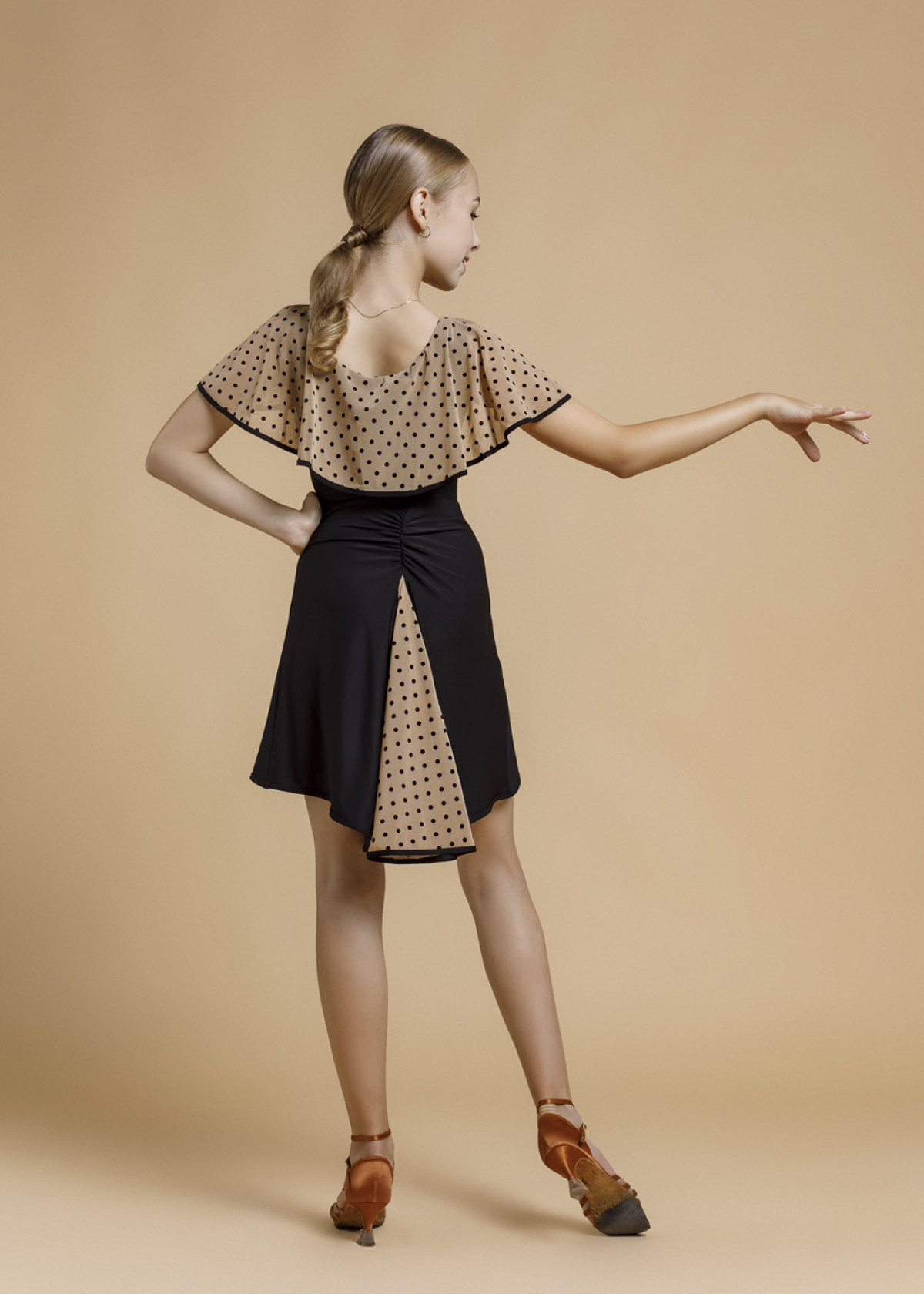 PAPILLION - Юбка ЛТ"Furore",драпировка 90%полиамид, 10%эластан, черный, Горох телесный, 140см