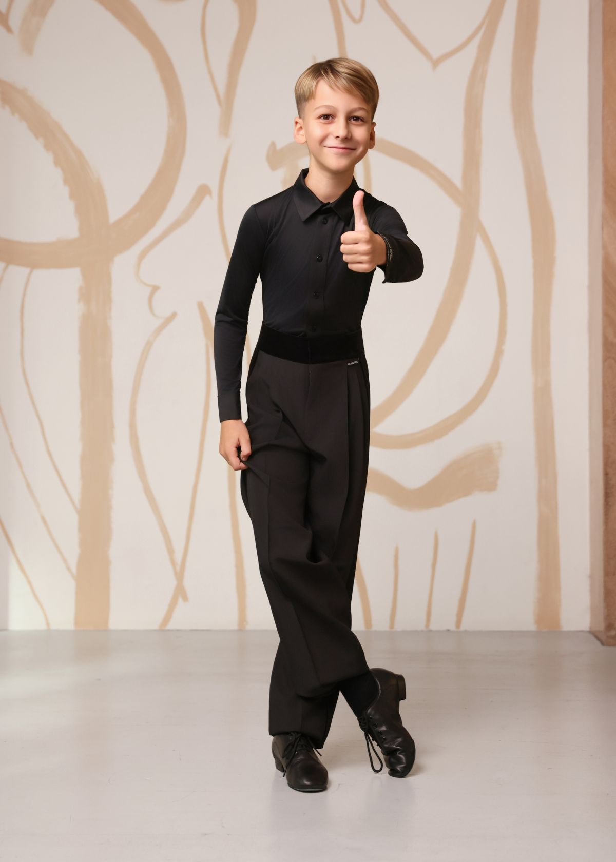 Классические мужские брюки SALVO с прямыми линиями — идеальный выбор для европейской программы бальных танцев. Модель подчёркивает строгость и сдержанную элегантность. Мягкий пояс с нашивкой Grand Prix и бархатные лампасы создают завершённый сценический образ. Подходят для тренировок и турниров, особенно для начинающих танцоров.