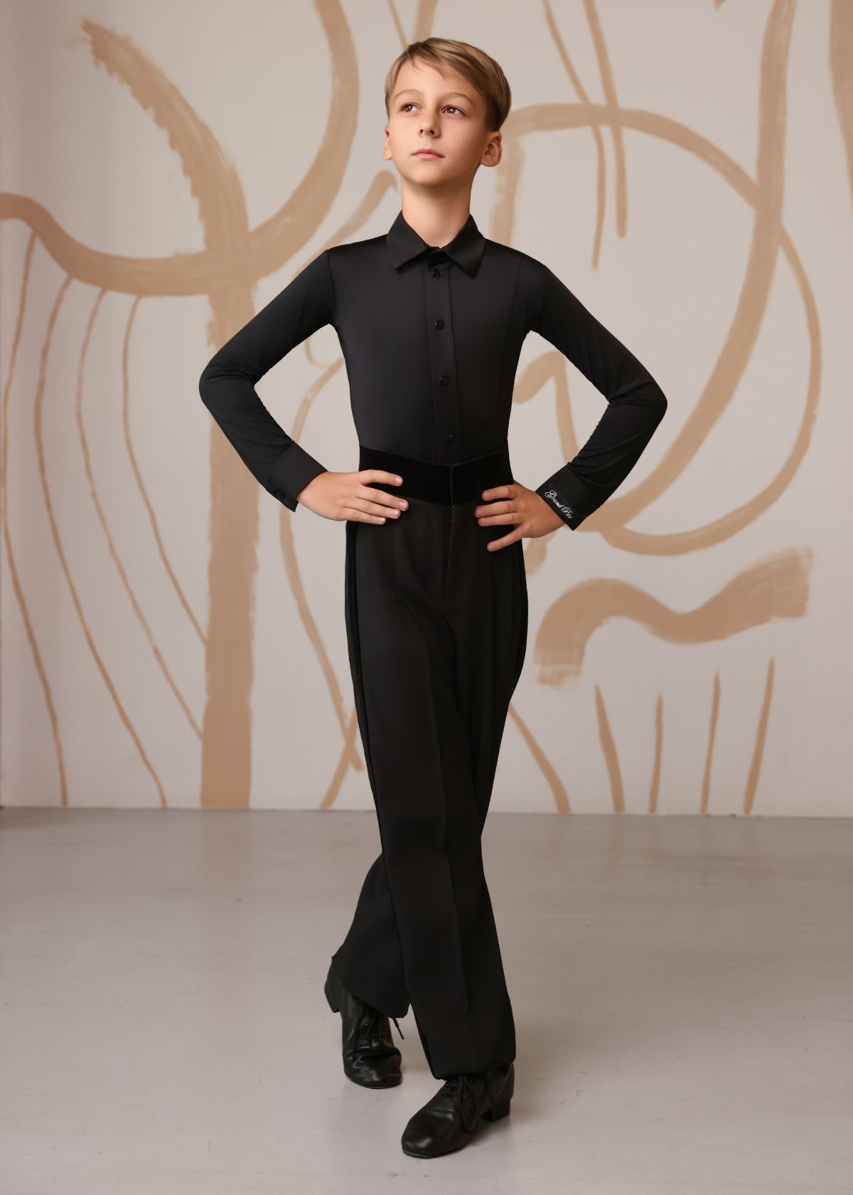 Классические мужские брюки SALVO с прямыми линиями — идеальный выбор для европейской программы бальных танцев. Модель подчёркивает строгость и сдержанную элегантность. Мягкий пояс с нашивкой Grand Prix и бархатные лампасы создают завершённый сценический образ. Подходят для тренировок и турниров, особенно для начинающих танцоров.
