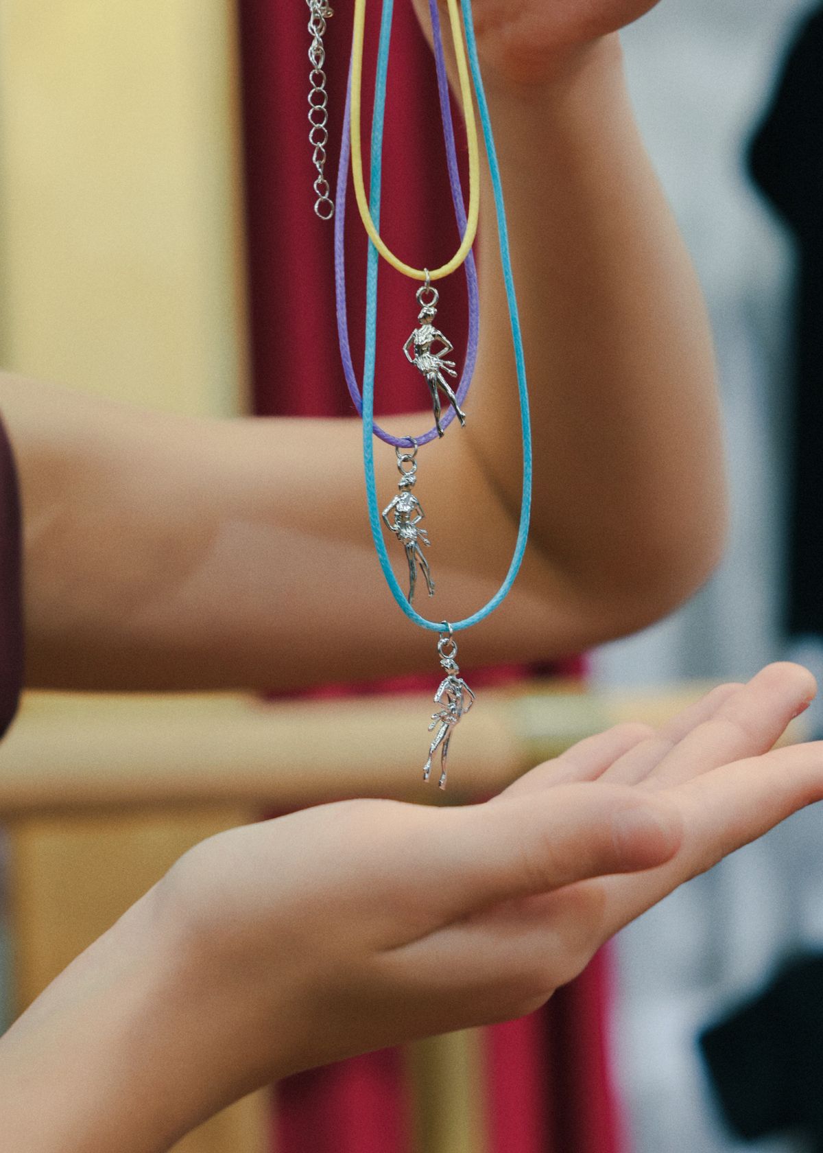 Лёгкое и изящное украшение для любительниц гимнастики. Серебристый кулон в виде гимнастки передаёт пластику и красоту движения, а мягкий шнурок приятно прилегает к шее и сохраняет форму.