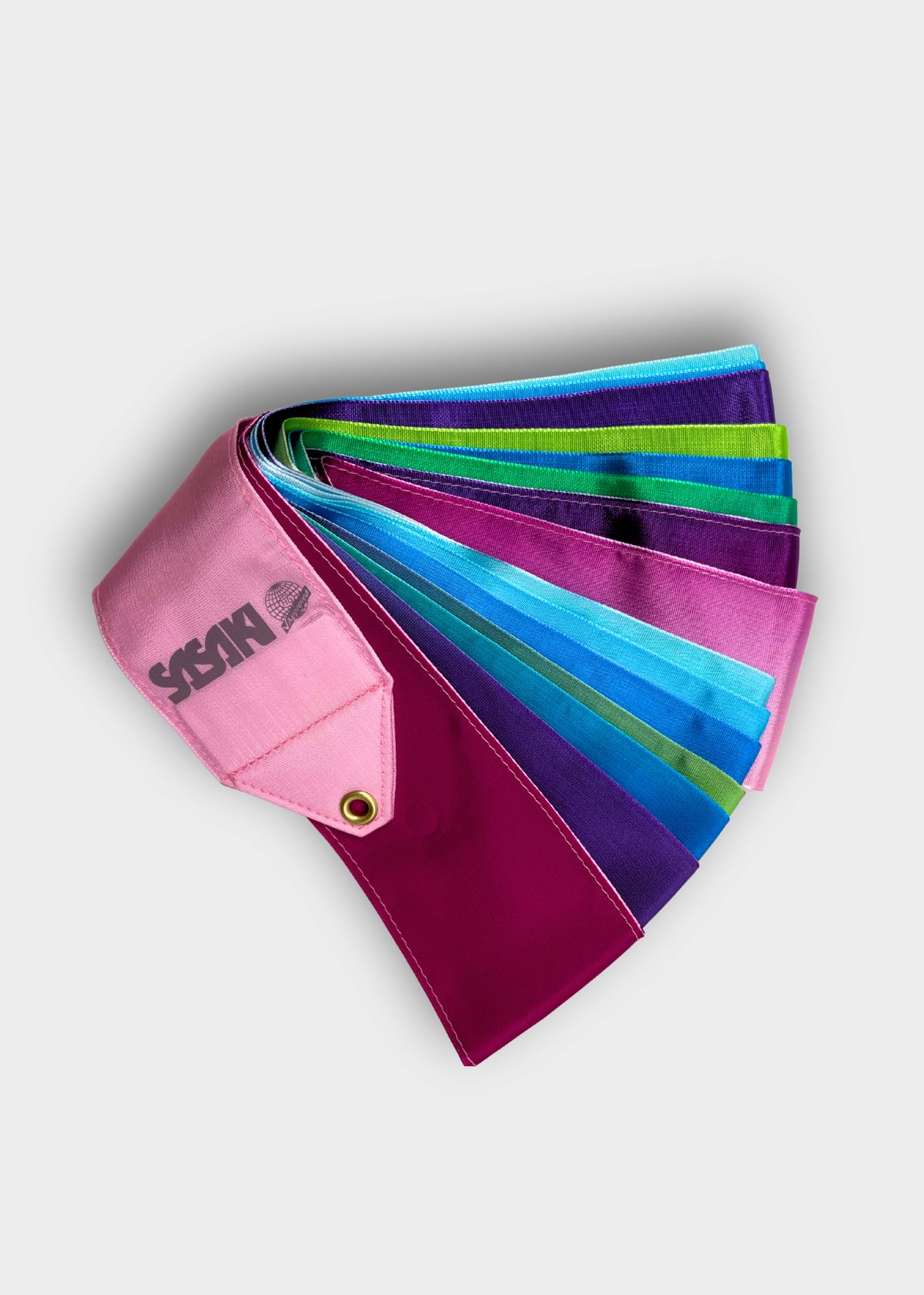 Професійна стрічка SASAKI з авторським градієнтом Artistic Gradient (AG), що створює унікальний ефект кольорової хвилі. Завдяки технології SHUSHIORI тканина має чудову рухливість та м’якість. Стрічка виготовлена згідно зі стандартами F.I.G. та підходить для виступів на міжнародних змаганнях. Ручне фарбування забезпечує неповторний візерунок кожної стрічки.