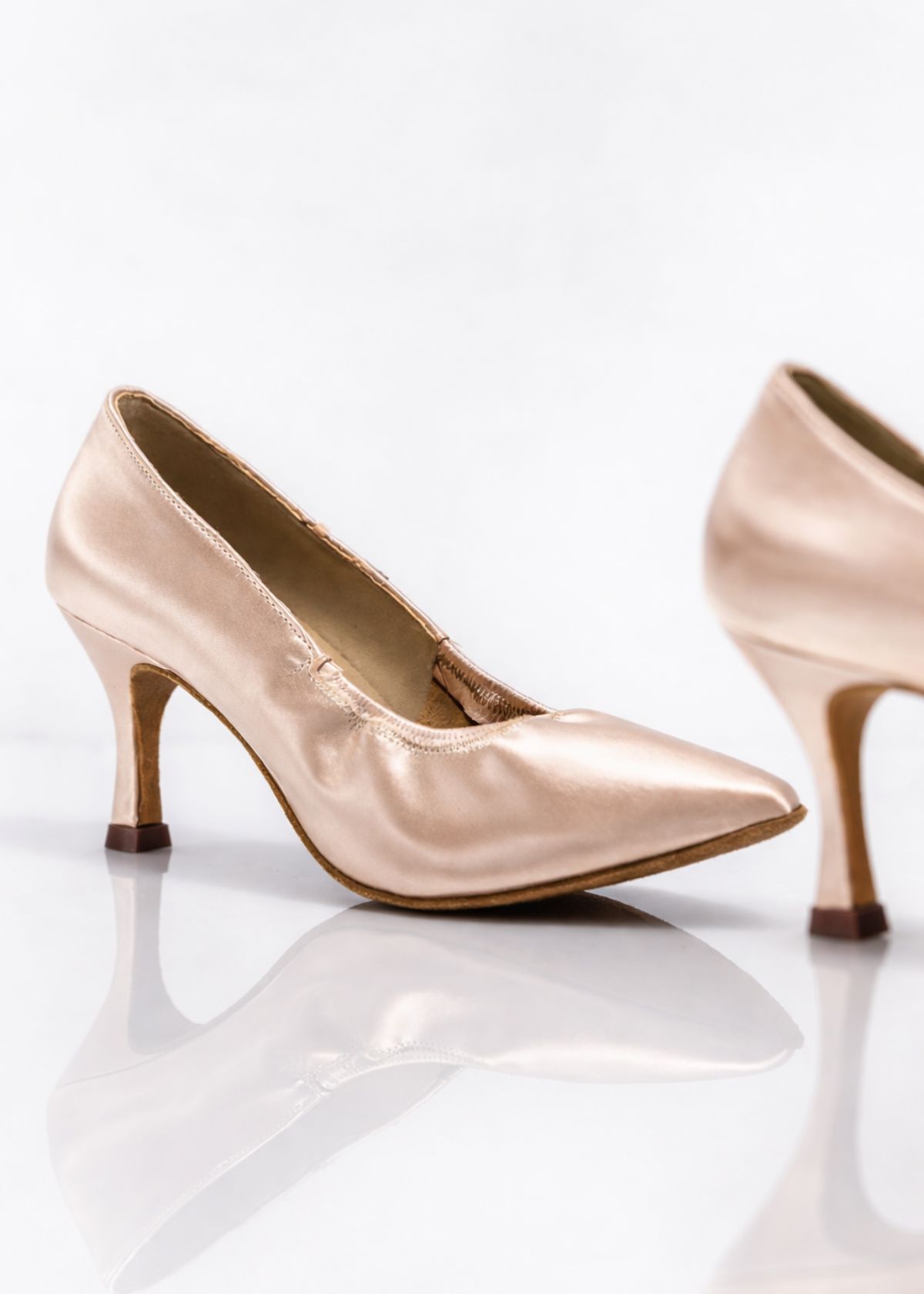Классическая модель женских туфель для стандартных танцев, выполненная в элегантном сатине нежно-розового цвета. Идеальный выбор для танцовщиц, которые ценят комфорт, надежную фиксацию стопы и изысканный вид на паркете.