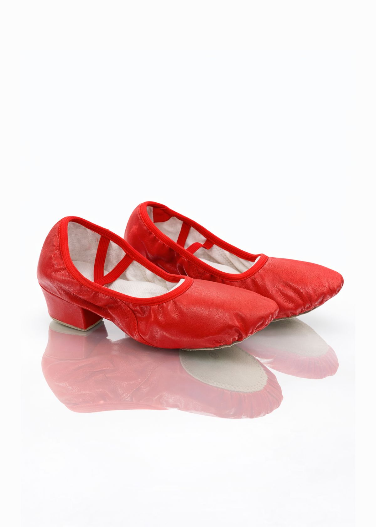 Эластичные перекрёстные резинки на подъёме обеспечивают надёжную фиксацию без давления. Устойчивый каблук высотой 2,5 см создаёт правильный баланс и удобство при притопах, шагах и вращениях. Подходят для тренировок и сценических выступлений.
